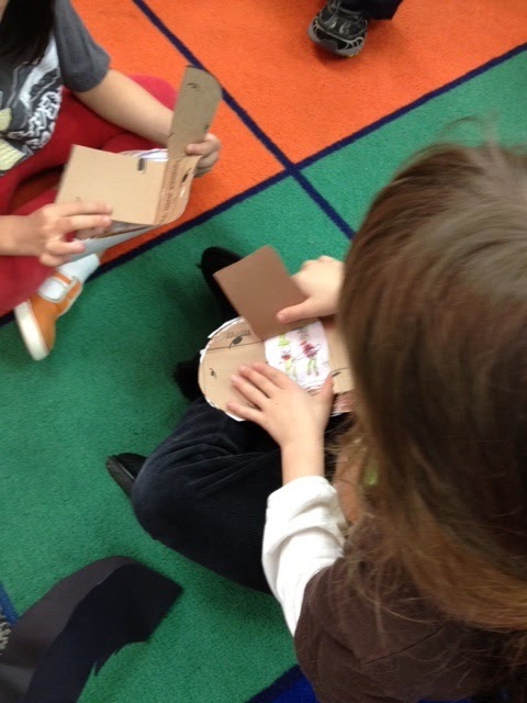 At the beginning of the week we listened to this story on tape. Then for the past two days, students assembled a potato flip book! As a class we brainstormed the beginning, middle, and ending parts of the story. Hello reading comprehension!!!! I sketched everything the students brainstormed on the white board. I made a point to ask students specific details about each character including hair color, clothes etc. We also talked about what facial expressions to draw on the characters for each part of the story. Students went back to their seats and got to work! I stapled the potato flip books together.